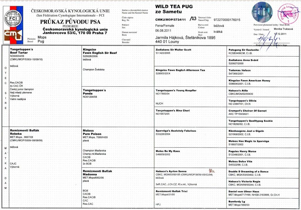 WILD TEA PUG ze Sametu nar.6.8.2011 VN1, V1, CAJC,ČESKÝ JUNIOR ŠAMPION,CACIB,2x res,CAC